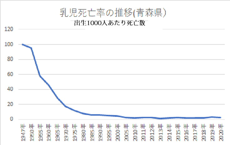 1950年、青森県の乳児死亡者の割合は1,000人中95.5人と全国で最悪を記録。