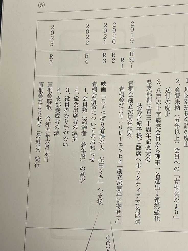 この会報には青桐会の1949年~2023年までのあゆみが書か