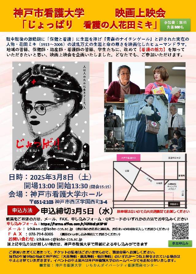 3月8日(土)神戸市看護大学ホールにて上映決定