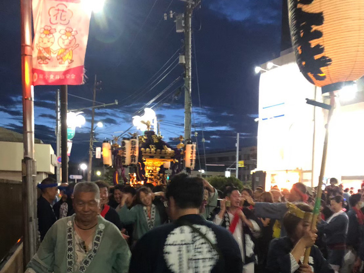 1日目には花小金井の駅北口側において車を通行止めにしてお神輿が練り歩き、