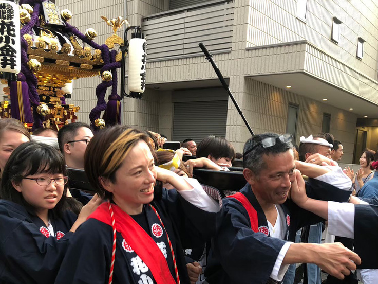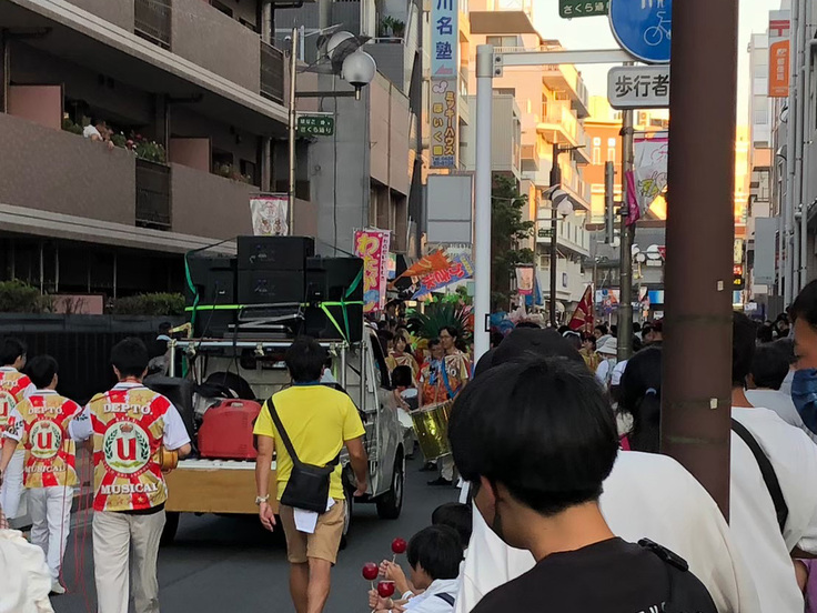 日本ならでは伝統的な夏祭りらしく、雄大に大太鼓が鳴り響き、街を神輿が練り歩きます。