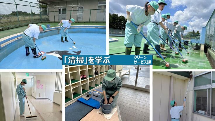 校内で清掃に関わる技術を学び、その成果を地域で発揮してくるという流れで実施しています。近隣の学校、社会体育館の清掃のほか、花巻おもちゃ美術館の空間清掃などをさせていただいています。
