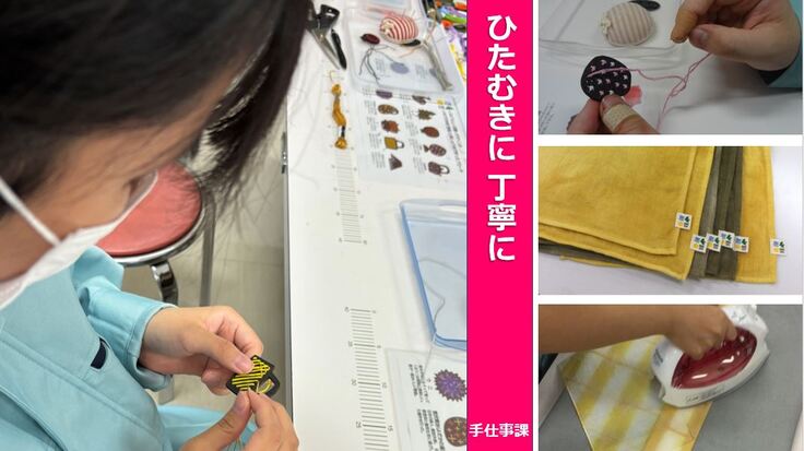 手仕事課では、器用さや集中して細かい作業を継続する力を身に付けています。草木染めにも取り組み、今年は、新たにぶどう染め製品を開発しているところです。
