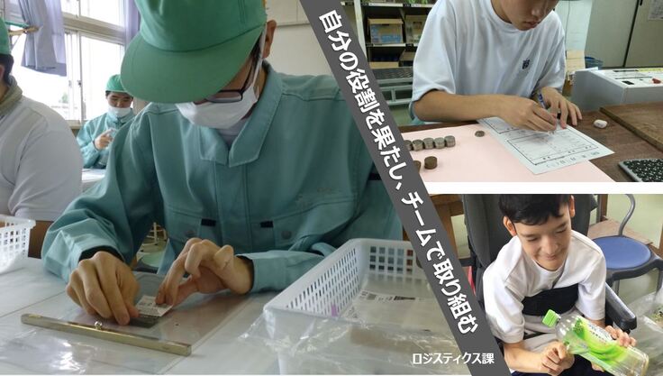 卒業後の就労を考えたとき、自分ひとりの力で全ての工程を担うということはありません。そこで、ものづくりを行うにあたっては、全体の工程の中の自分はどの役割を担っているのかについて分かり、責任をもって自分の役割を果たすこと、次の工程の人が、仕事がしやすいように仕事を受け渡すことについて学んでいます。