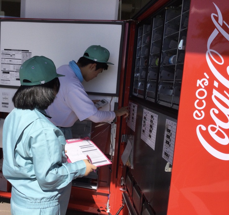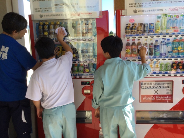 また、校内実習は、基本的には日頃、所属している作業課とは違う課への所属をしますので、1年生のメンバーで初めての自販機作業です。