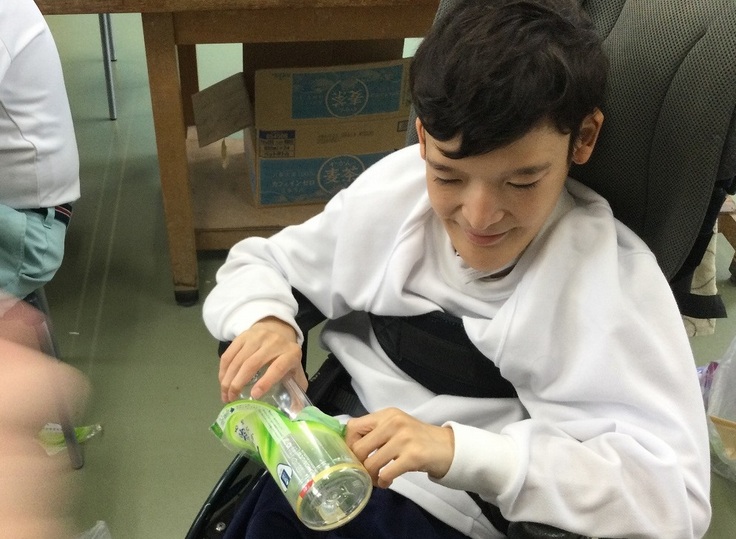 1年生は、この作業を通して多くの気付きがありました。「飲料水のケースはとっても重いということ」「重いケースの持ち上げ方(腰を痛めない持ち方)」「一人で持つことが難しいときには、手伝ってくださいと声を掛けること」など、やってみて分かることがたくさんありました。そのほかにも、どうすれば作業の効率が上がるのかを考え、役割を分担すればいい!ということにも自分たちで気付くことができました。