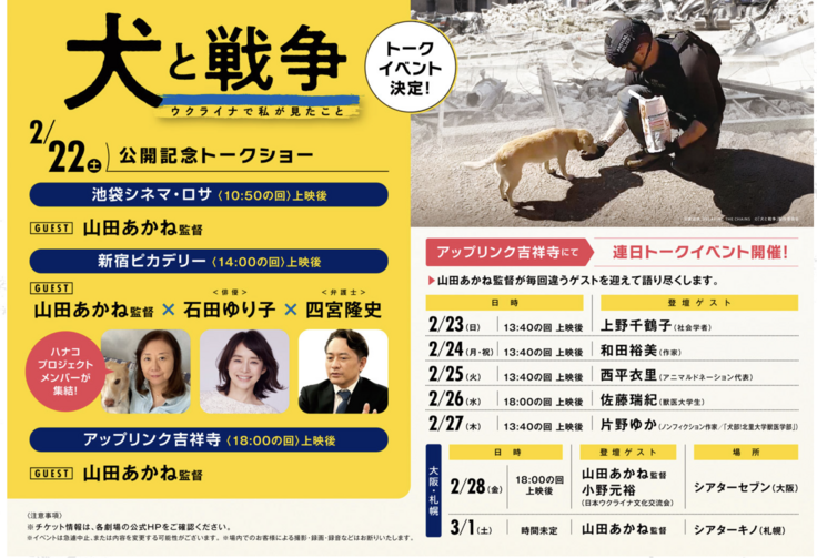 映画「犬と戦争」公開記念 ハナプロ理事によるトーク開催です