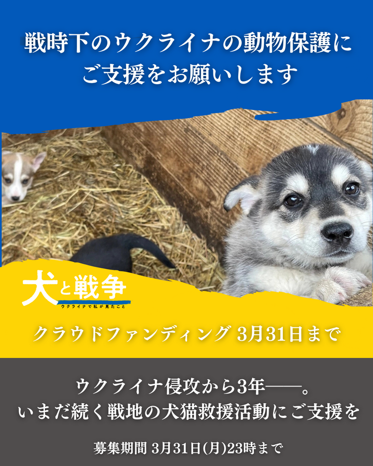 ウクライナの動物たちへの支援が今月いっぱいです。