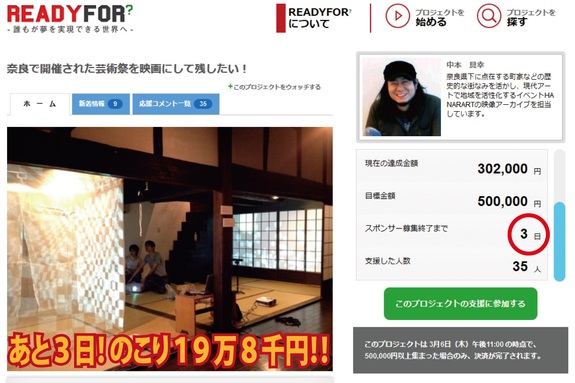 ■READYFOR? -奈良の町並みとアートが融合した「奈良・町家の芸術祭HANARART2013」を映像で残したい!-