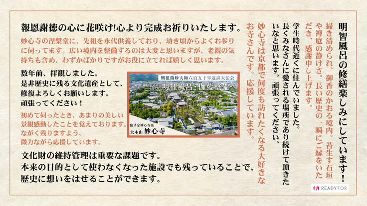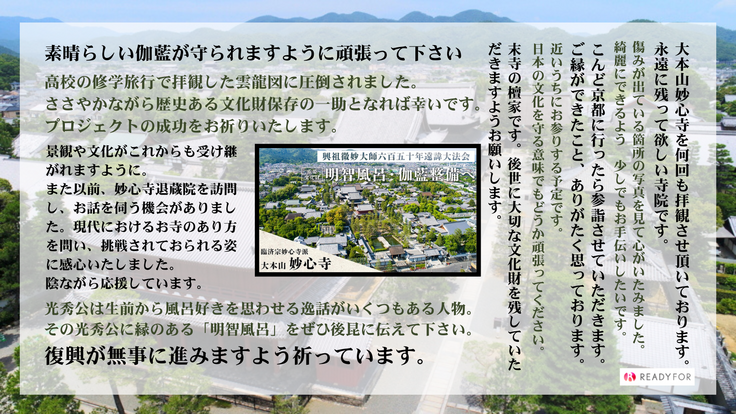 いつも当山を応援いただき、ありがとうございます!クラウドファンディングの挑戦も残すところあと4日となりました。