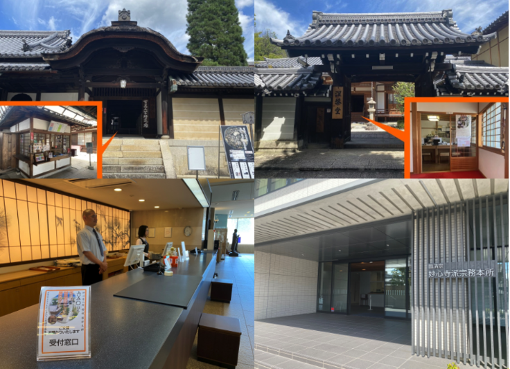 窓口は4箇所、妙心寺拝観受付/涅槃堂受付/花園会館フロント/妙心寺派宗務本所にご用意しております。必ず申込書(フライヤー裏)を添えてお申し込みください。
