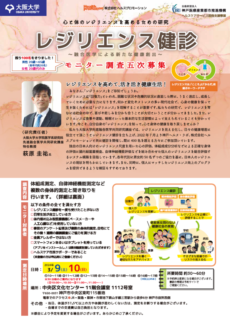 3月9日(土)、10日(日)レジリエンス健診開催!モニター募集中です。
