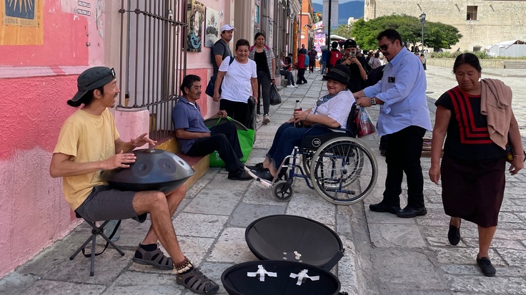 メキシコは今まで訪れた場所とは全く違う魅力がありました。町中にラテン音楽が響き、マリアッチの音楽団が練り歩き、タコスの屋台があちこちに並んでいます。そんなメキシコの旅でも、ダンスイベントでのDJやハンドパンの演奏を行いました。