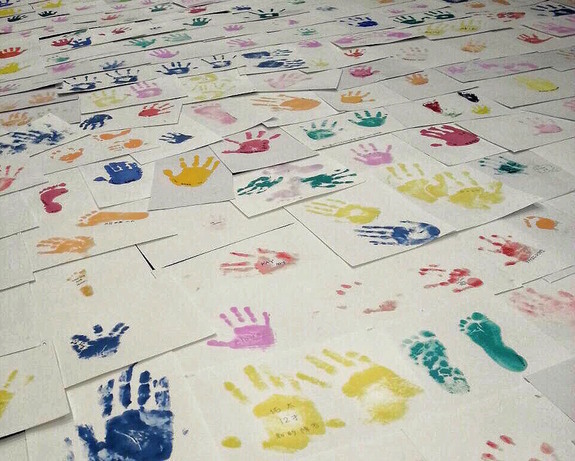世の中にはたくさんの病気があり、たくさんのがんばっている子供達がいます。まずはそういった子供達の存在を知ってもらいたい。「障がい児」とくくらず、一人一人に名前があると伝えていきたい。一人一人の声は小さくても、みんなが手を取り合えば世の中を変える大きな声になります。そこで始まったのが、このハンドスタンプアートです。