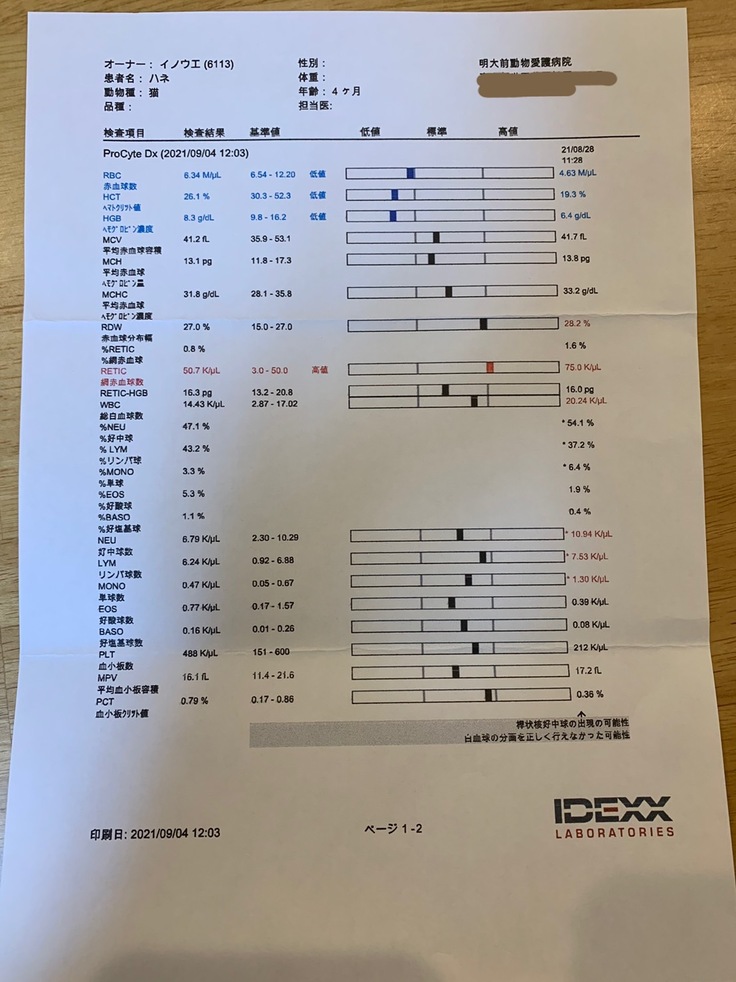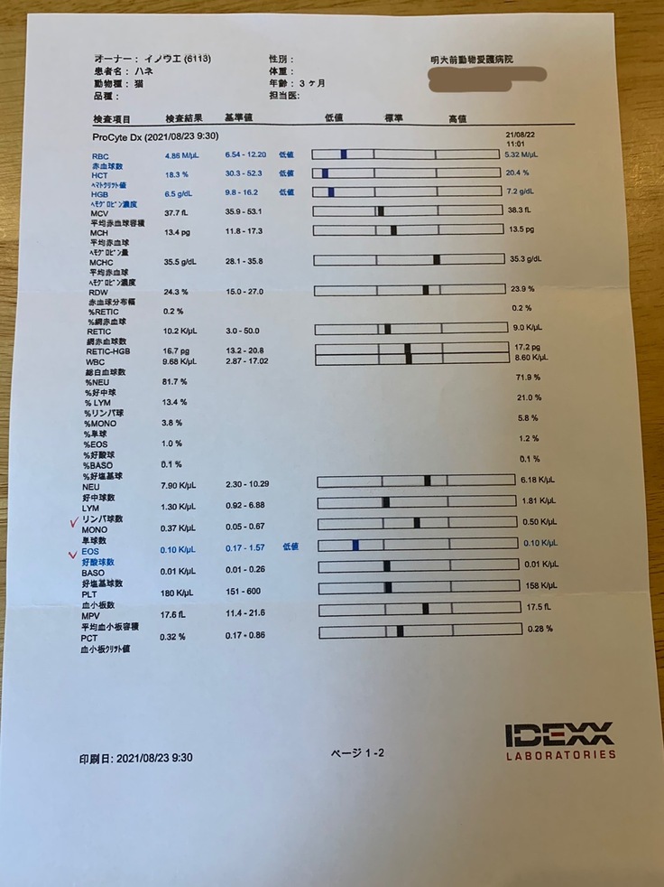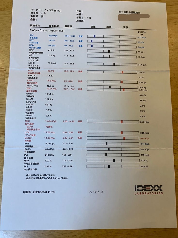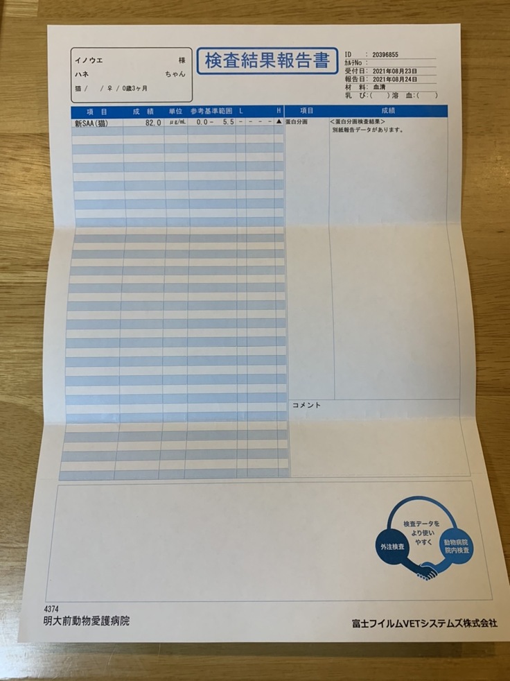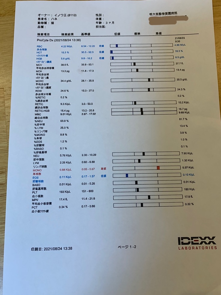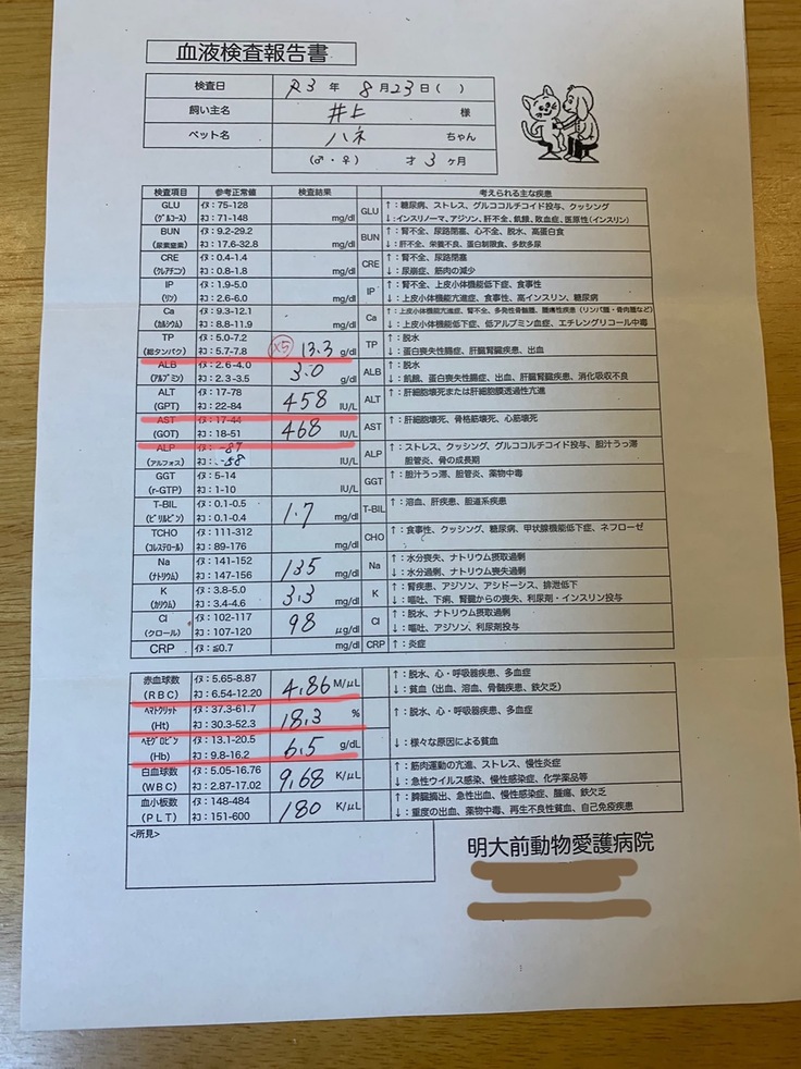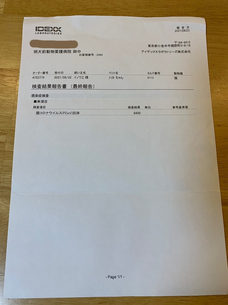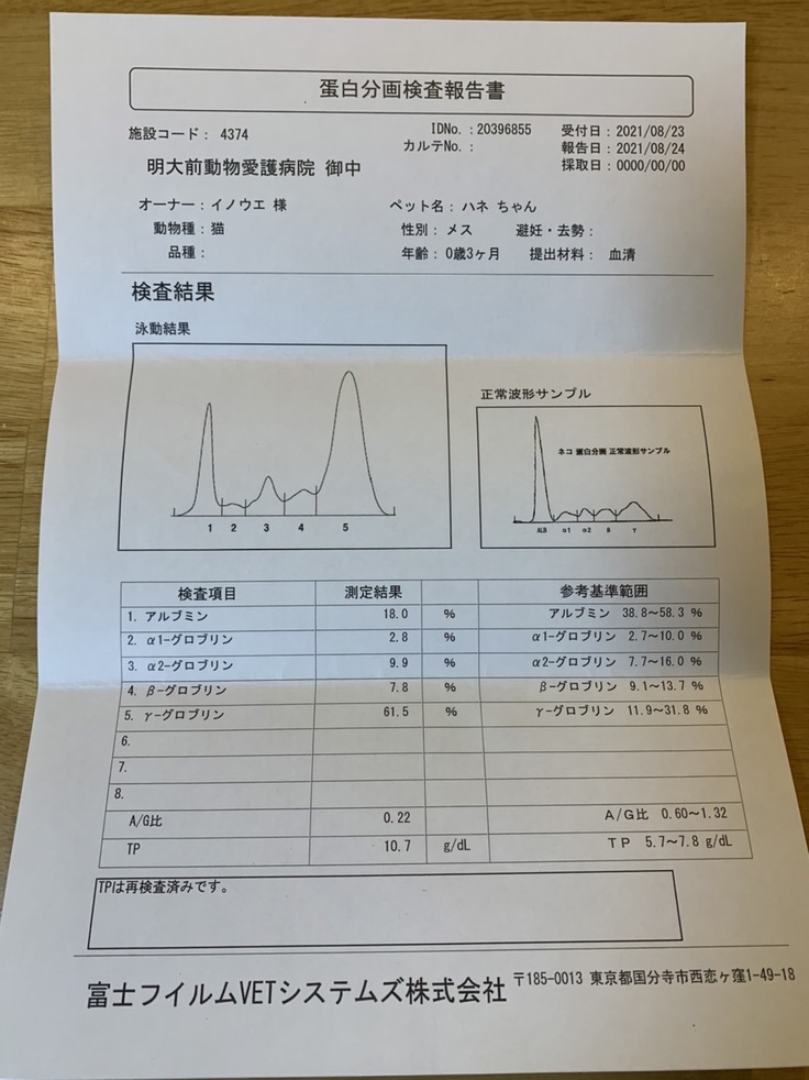 ・2021年8月23日 血液検査の結果でFIPであると発覚