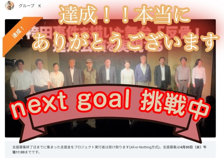 ただ、この公演のこと自体を一人でも多くの方に知っていただけるよう、宣伝資金・収録資金をさらに調達できましたら幸甚です。