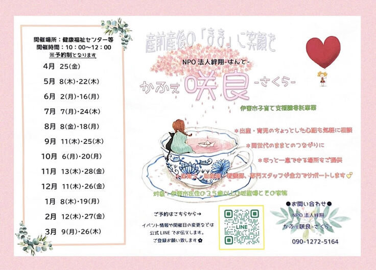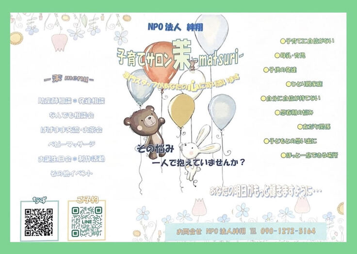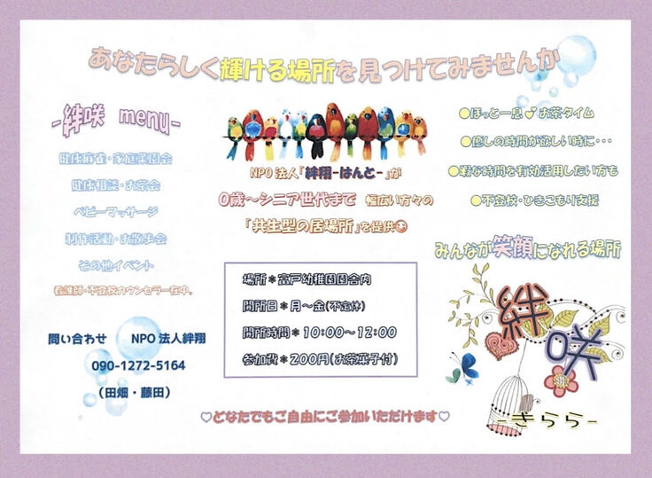 NPO法人絆翔は、妊娠期~赤ちゃん~シニア世代まで、