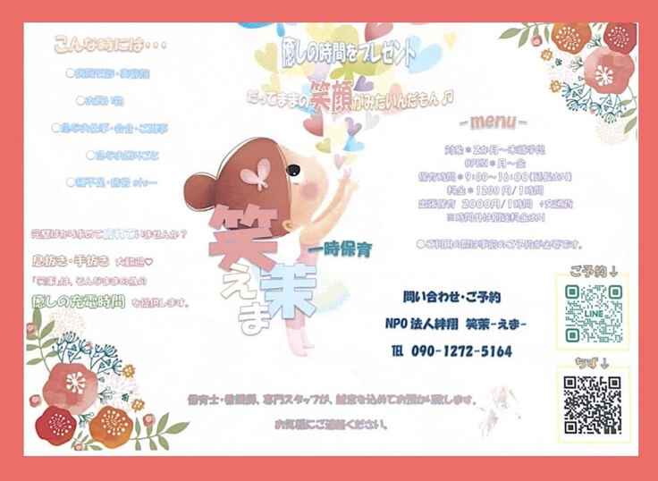 「一時保育 笑茉 -えま-」と「子育てサロン 茉 -まつり-」にて