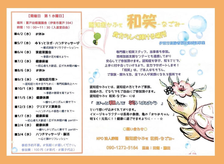 健康麻雀・筆文字・脳活・家庭菜園・音楽・ゆるっとヨガ・ベビーマッサージ等、