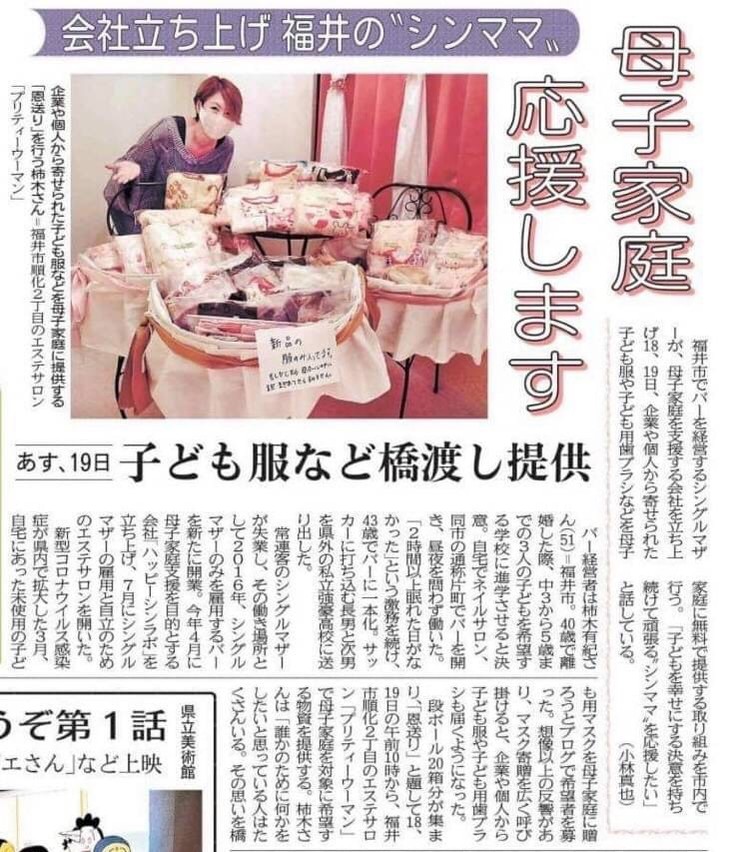 私たちは、シングルマザーとその子どもたちが、「将来に希望を持ち、幸せな生活を送ること」を目的として、昨年4月に設立した母子家庭支援を行う会社で、母子家庭に必要な物資を届けるイベントを実施したり、お仕事の紹介、キャリアップのお手伝い、悩み相談まで、孤独になりがちなシングルマザーへの支援を目指しています。