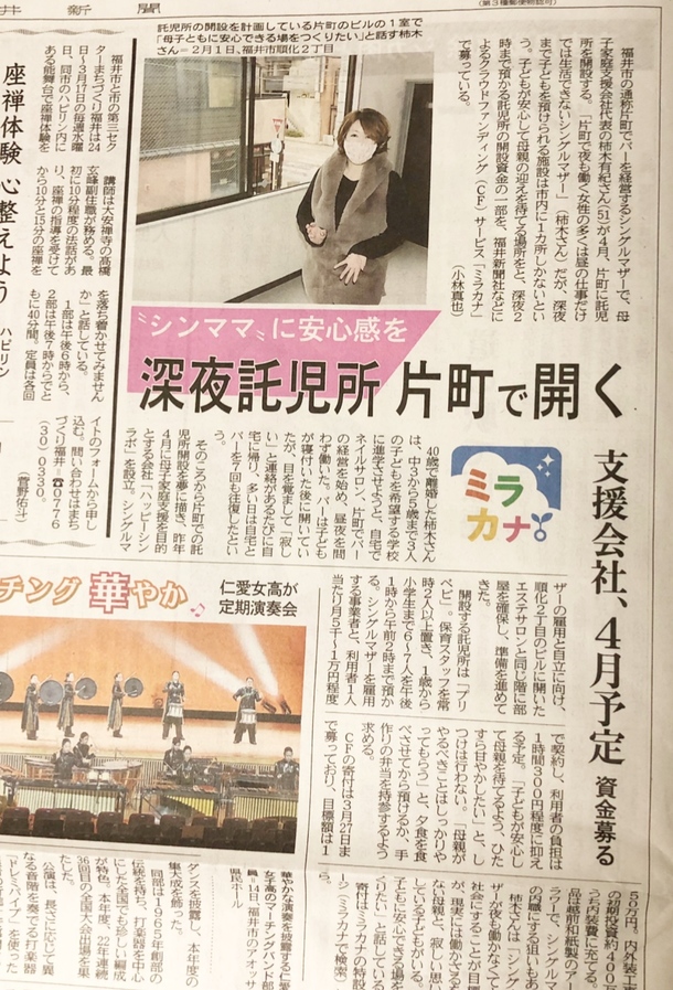 昨日は福井新聞にて大きく掲載され、今日は朝からシンラボの事務所にも激励の電話が鳴りっぱなしです。