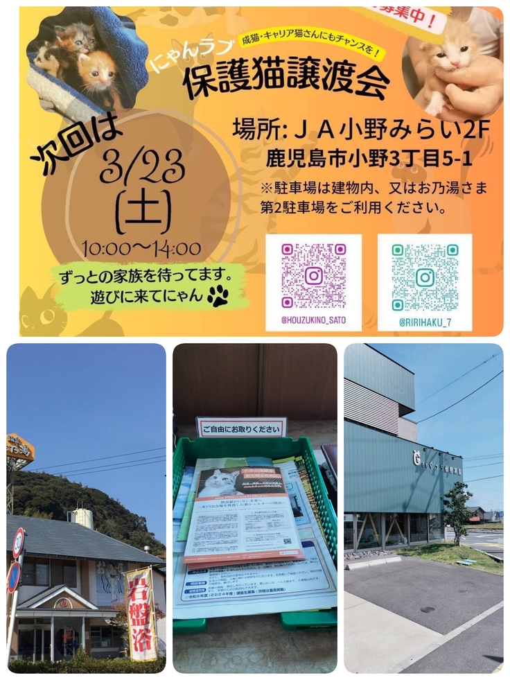 鹿児島市近郊の皆様、明日土曜日、保護猫譲渡会が開催されますよ~!