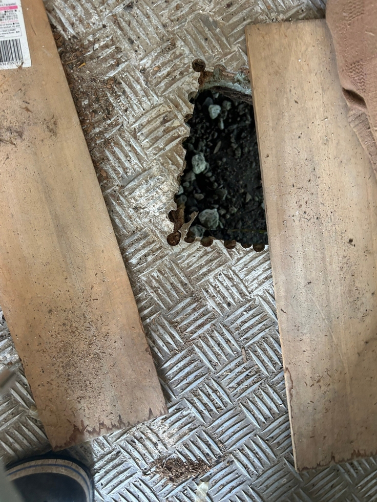 床は腐食してブカブカです。。誰がとどめをさすのか・・