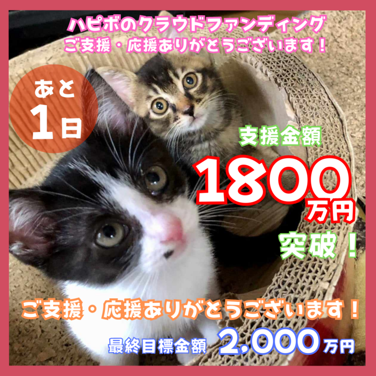 昨日1800万円を突破し、最終日である本日、