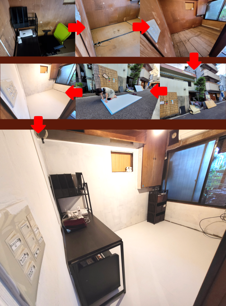 本日(7/18日)は、一階の和風レンタルルームと一階の駄菓子屋ぽぽちゃんの部屋の改装を行いました。