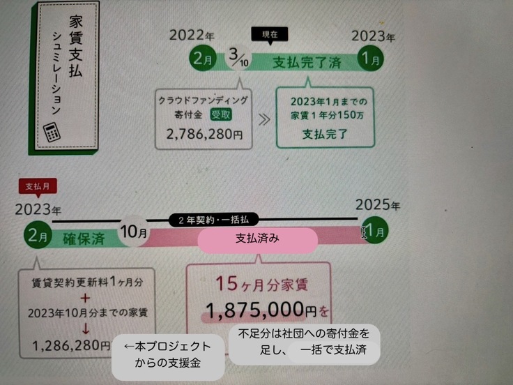 早いもので、次の契約更新(2025年2月〜2027年1月)の時期が来ます。一括で2年分の家賃を払はないといけません。再度、ご支援をお願いするかもしれませんが、その時にはご協力をお願いたします。私も最後まで頑張りますので、宜しくお願いいたします。