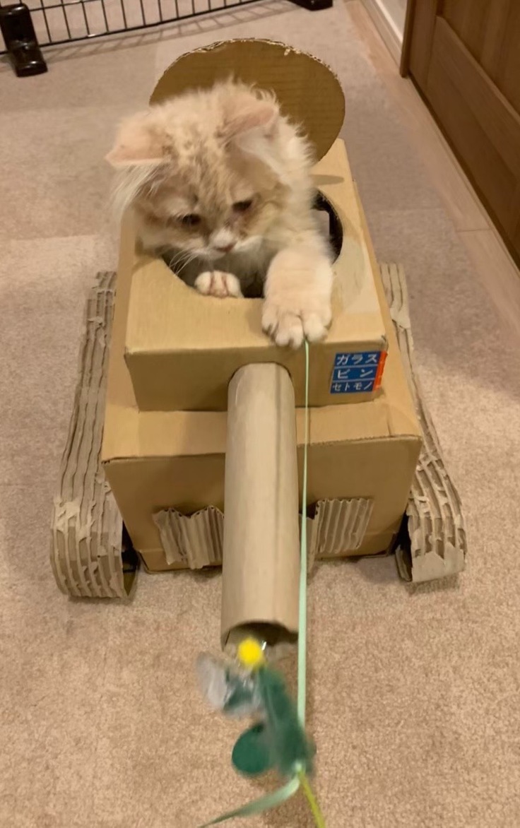 画像:モフオと戦車(一時緊急保護に協力してくれる学生のご家族作)