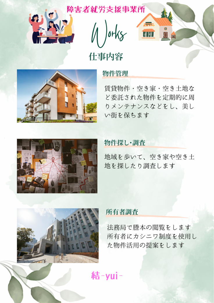 *障害者就労継続支援B型の仕事内容は『不動産業』