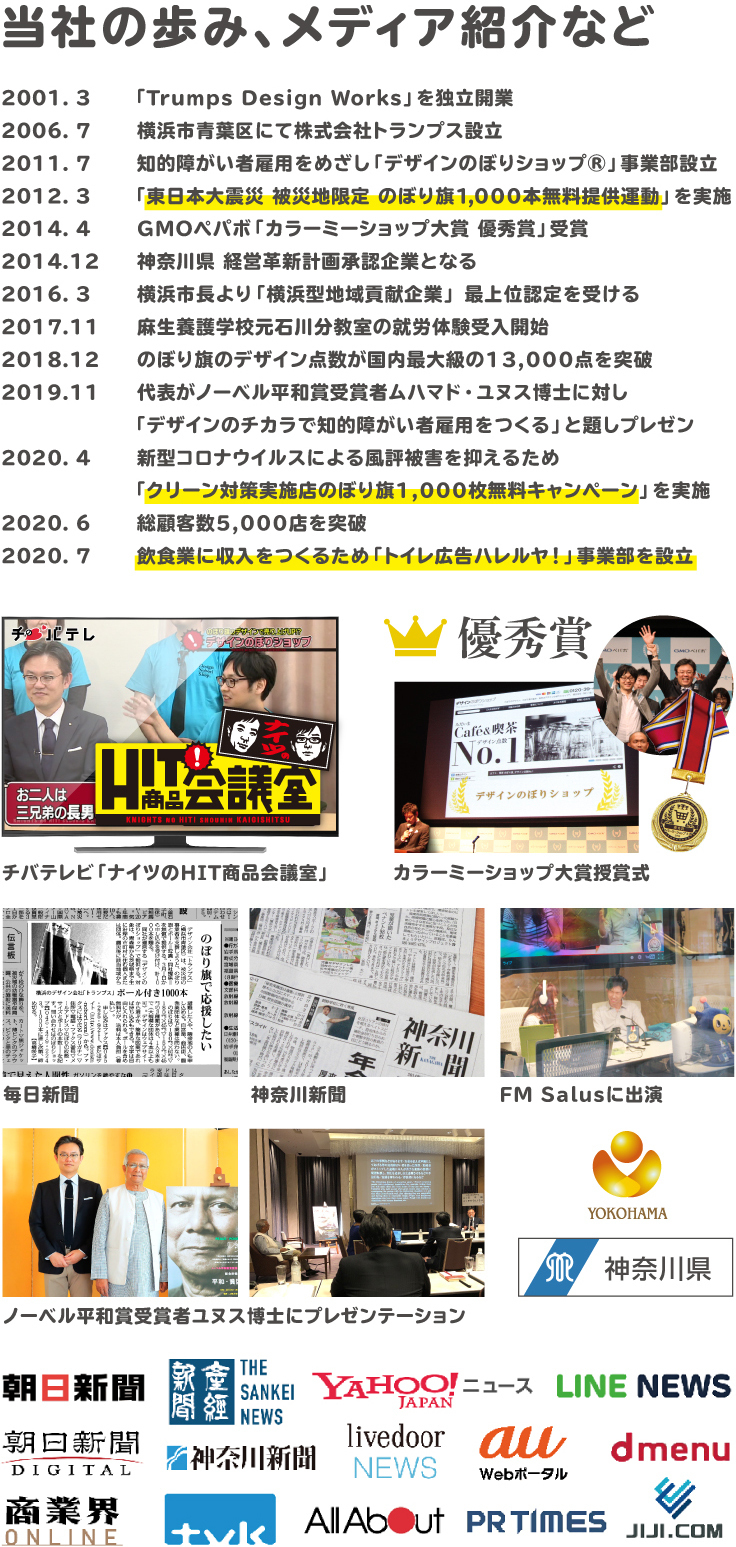 もともと独立から11年連続で前年比売上平均130%の安定成長を続けていたデザイン会社を、のぼり旗の制作販売の事業に方向転換した理由も、『働きたいのに働けない人をなくす』という理念に近づけるためでした。