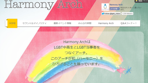 Harmony Arch という名前には、このホームページがLGBTs中高生とLGBTs当事者をつなぐアーチとなり、このアーチから和(ハーモ二ー)が広がるようにという願いが込められています。ホームページでは具体的にLGBTsの基本情報、本の情報、Q&Aコーナー、イベント情報、当事者団体情報などの配信を行っています。(ホームページはこちら)
