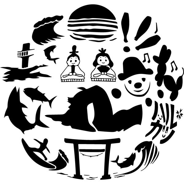 勝浦らしく海やカツオやサーフィンなどと共に、大道芸には欠かせない小道具やバルーンの犬、そしてひな祭りとハルカツのロゴマークをかわいらしく素敵にデザインしてくださったのは大人気リズムペインティングパフォーマーとして国内外を飛び回る「ユキンコアキラ」さん!