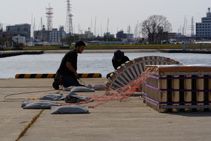 土浦市が関わる花火マッチング事業のひとつとして、会場(土浦新港)の確保、備品の貸出などにご協力を賜りました。土浦市消防本部、地元警察からは申請手続きや会場の安全の確保についてのご教示をいただきました。