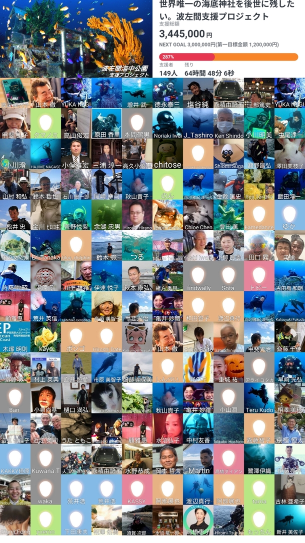 現在、149人の方々より3,455,000円のご支援を頂いており、目標金額の287%に達しております。