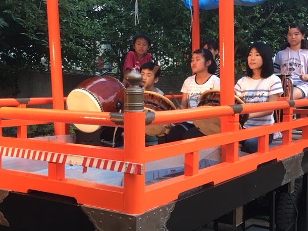 夜には早速子供達が山車に乗り、お囃子を披露しました。