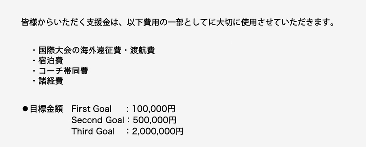 橋本大輔が、いただいたご支援金を国際大会の海外遠征費・渡航費・宿泊費・コーチ帯同費・諸経費の費用の一部として使用させていただきます。