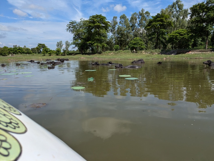 湖面一面に蓮の花が咲いている風景を目に焼き付けて