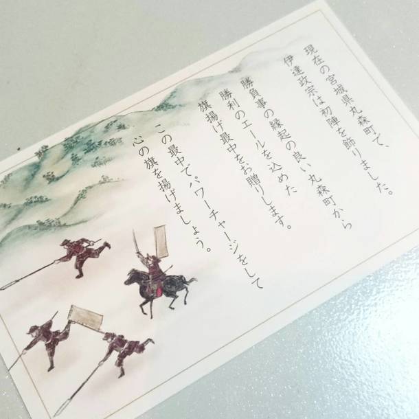 写真は完成し納品されたカードです。商品のリーフレットとともに同封いたします”応援の心”を伝えるカードの裏面となります。今後も進捗情報アップしてまいります!