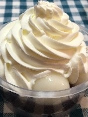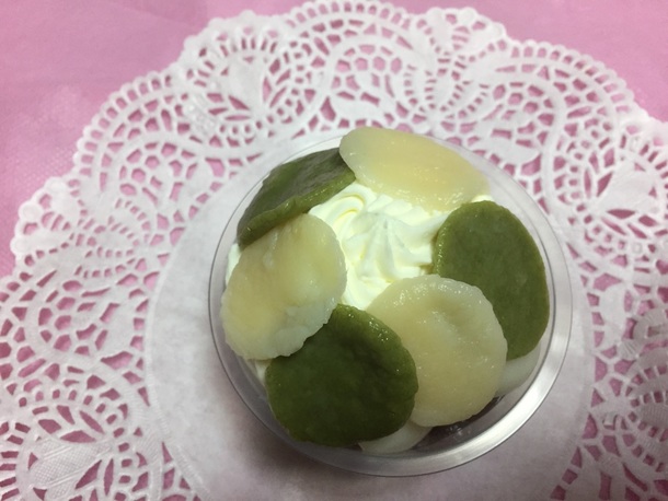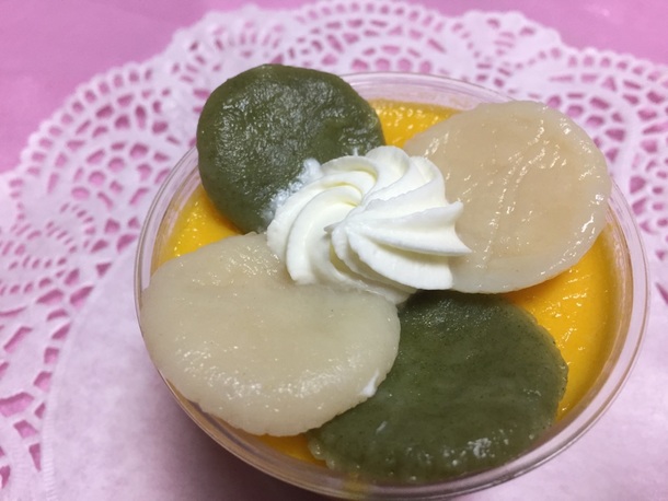 コンビニスイーツのクリームぜんざいにはっと乗っけました。