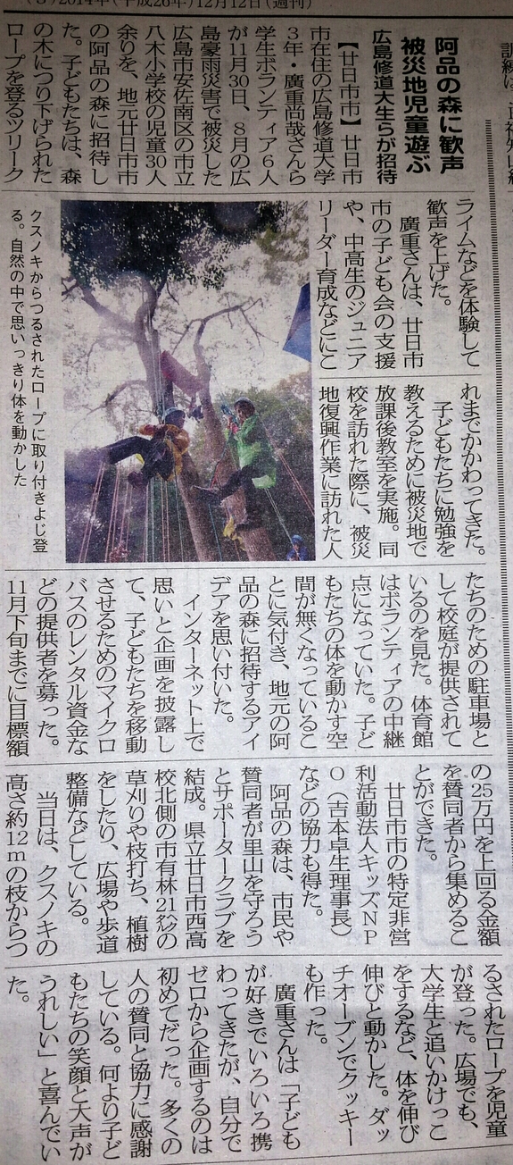新たに写真(私・廣重が子どもと接している様子)を数枚アップします。そして西広島タイムスさんの今週の新聞に記事にしていただきましたので、どうぞご覧ください!