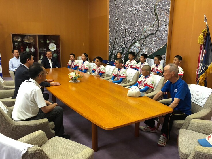 本日、北ナニワハヤテタイガース6年生団員で、市長を表敬訪問いたしました。