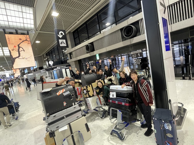 空港スタッフのみなさんの協力もいただき、無事に全ての人と荷物のチェックイン完了!