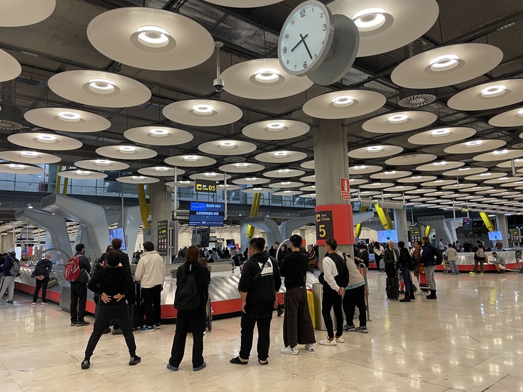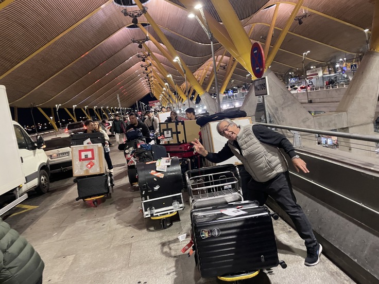マドリード空港に到着したら、まずは11台のカートを用意して