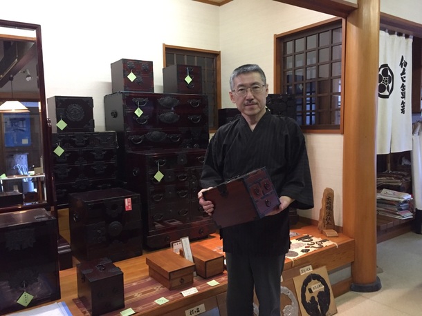 お話を伺った後、工房にあるさまざまな種類の箪笥作品、漆器などを拝見しました。お客様のニーズに合わせて、使用する木材を変えるなど、どれもこだわりと愛情の詰まった品ばかり。時代のニーズに合わせる柔軟な考えもお持ちです。