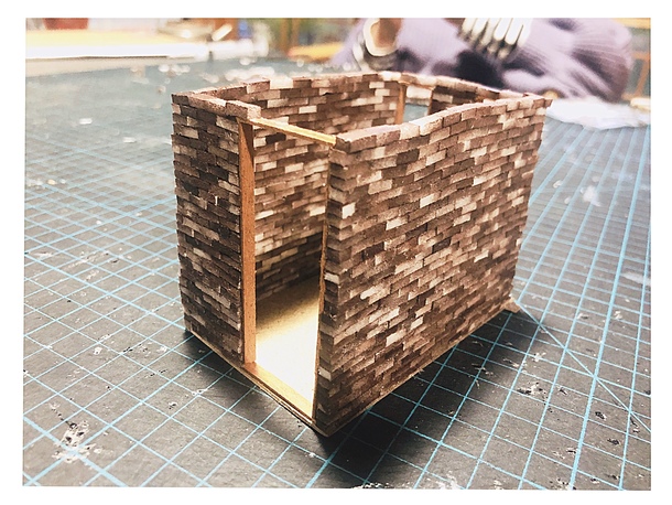 何度も図面やスケッチで検討していた案でも、実際にレンガを積んでみたり、窓枠をつけようとすると、「あれ?ここどうやればうまくおさまる?」という部分が沢山出てきました。同じものでも違う見方にしないと分からないことってあるんだなぁ。そして、窓枠、ドア枠を作成していると、もっとこの枠の検討したら面白い部分が出来そうじゃない⁉︎との相談が出てきたり!これこそ詳細な検討をする事での醍醐味でしょうか😊?