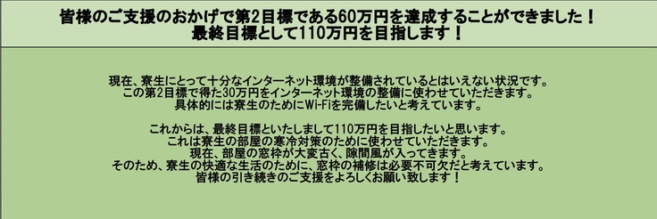 コロナ禍により寮生が減少し赤字のため、資金を募り、京都国際学生の家の継続運営を行う。
