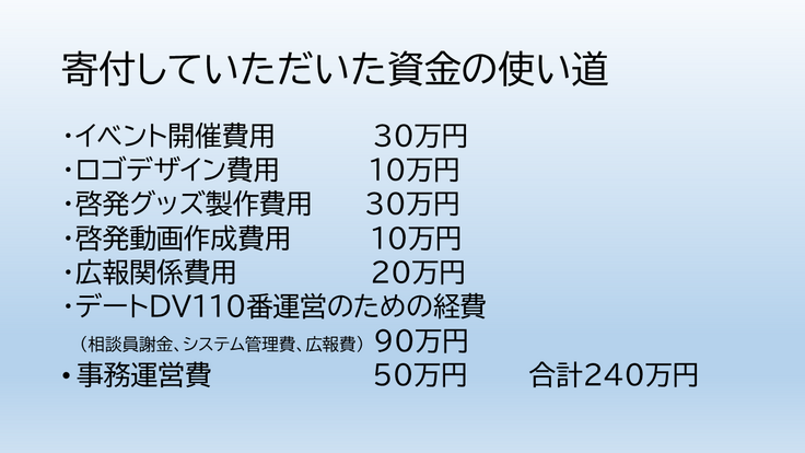 デートDV防止のために、先駆的に予防教育、広報啓発、相談窓口、回復支援を総合的に進めてきた私たちの活動地域の中で、あってはならない事件が起きたということです。
